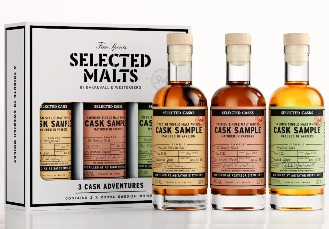 Äntligen kan vi släppa loss vårt sample kit. 3 flaskor á 20cl med cask samples från de små faten. Här kan du kliva rakt in i våra lager och botanisera lite bland olika fattyper och recept på single malt lagrad på 40 liters fat.