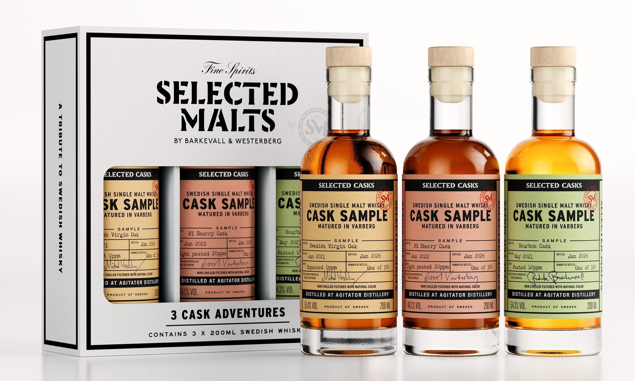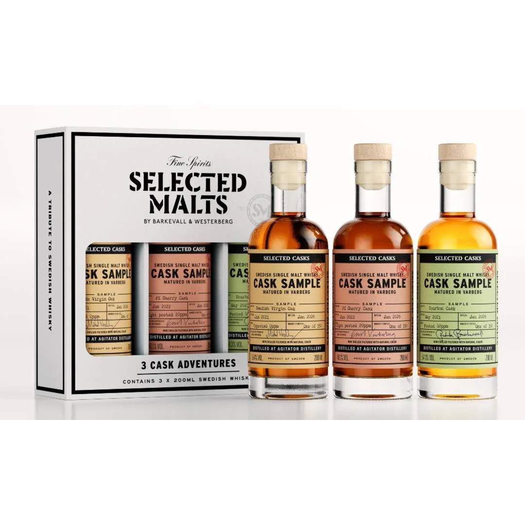 Äntligen kan vi släppa loss vårt sample kit. 3 flaskor á 20cl med cask samples från de små faten. Här kan du kliva rakt in i våra lager och botanisera lite bland olika fattyper och recept på single malt lagrad på 40 liters fat.